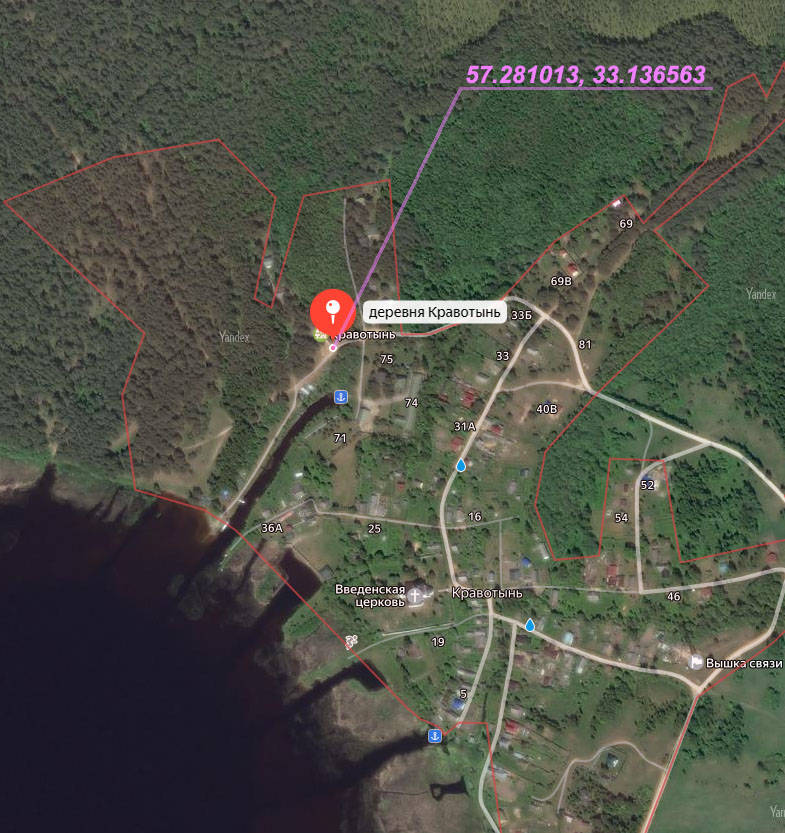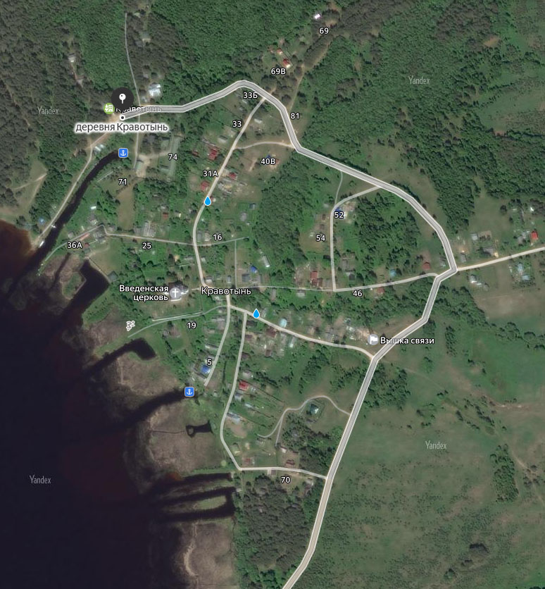 И через 4.2 км после поворота приезжаем в Кравотынь (ориентир - вышка сотовой связи):