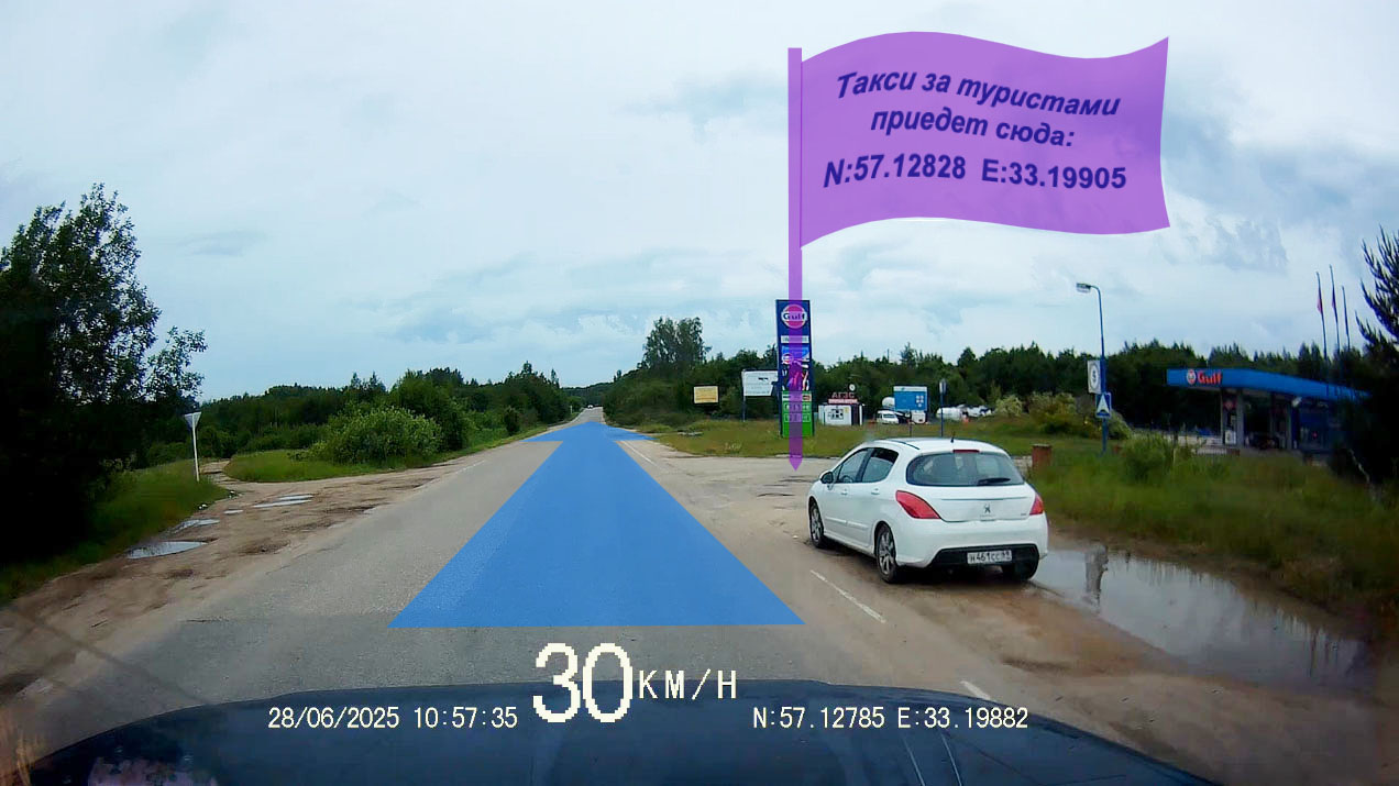 Внимание! Те, кто добирается общественным транспортом, должны выйти из автобуса у этого знака и затем пройти около 100 м до АЗС "Gulf"
