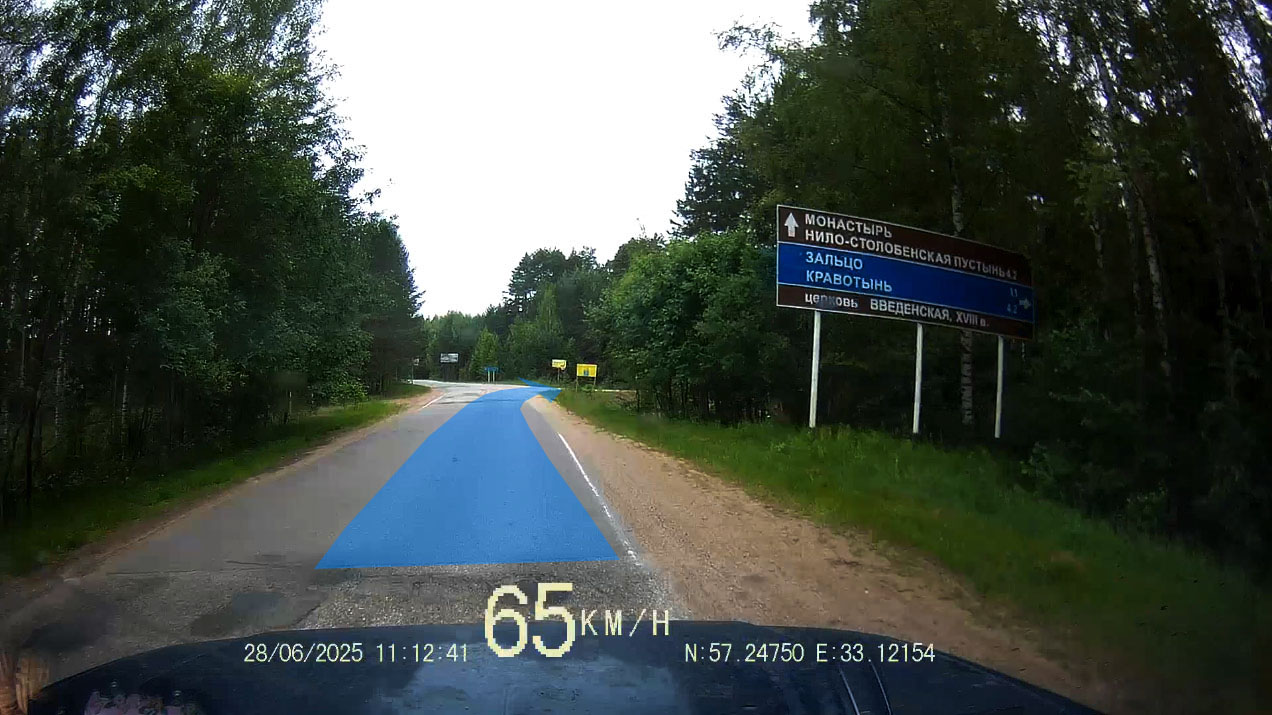 Через 5.5 км после поворота уходим с главной дороги влево на дорогу в Нилову Пустынь, Пачково, Зальцо, Кравотынь (28Н-1223):