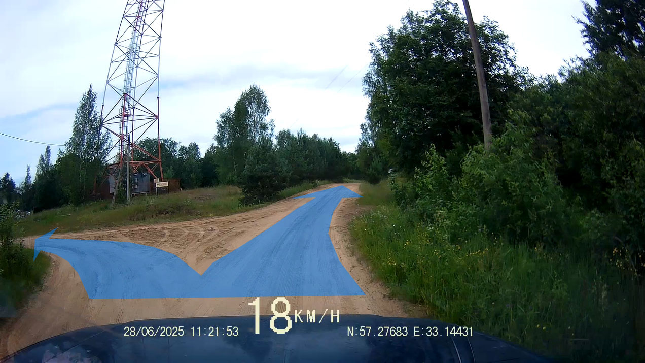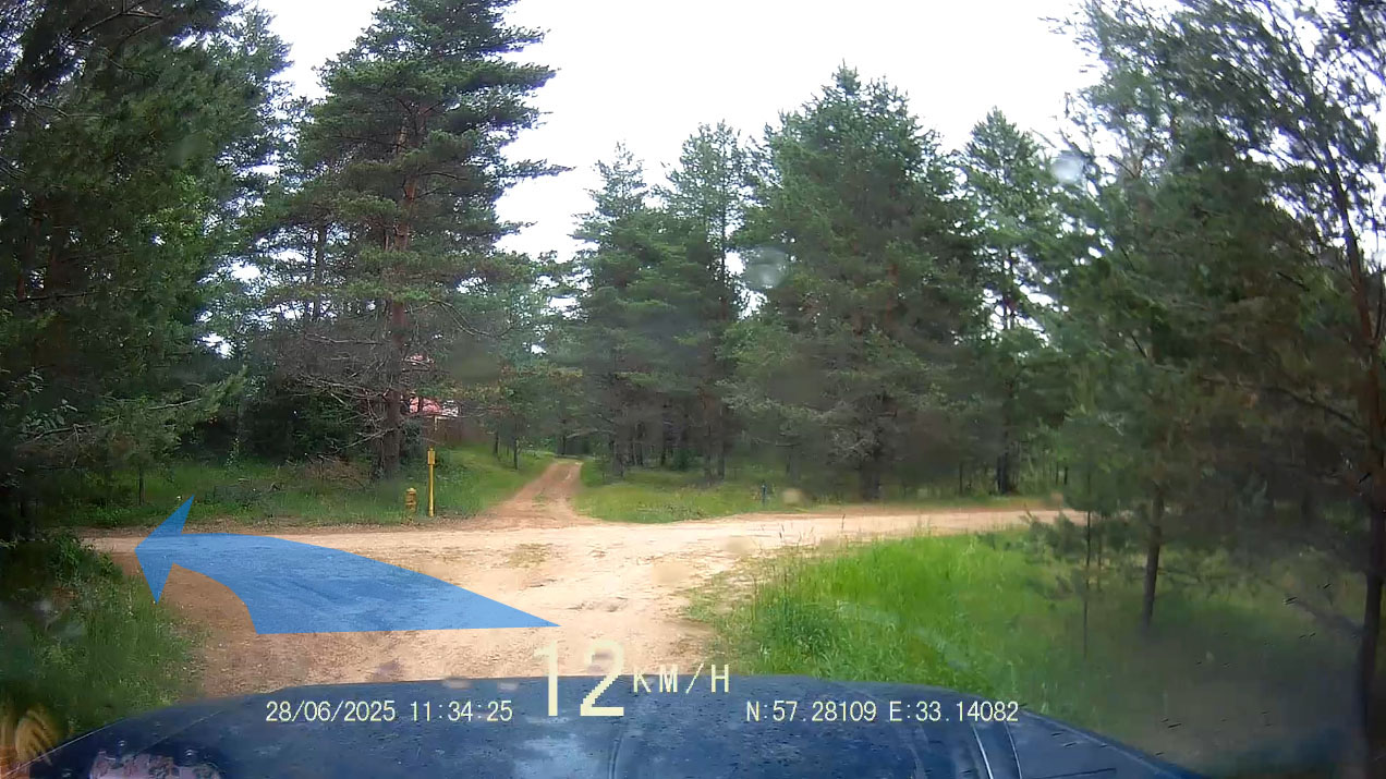 Здесь поворачиваем налево на каменистую дорогу. Кстати, здесь соединяются прямой и левый пути через Кравотынь.