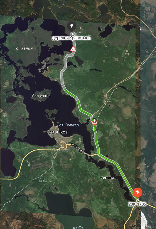 Описание начинаем с точки соединения всех дорог на Селигер из центральных регионов - это перекресток трасс А111 и Р87 (по новым обозначениям - 28К-1785 и 28К-1179), идущих, соответственно, через Торжок-Кувшиново и Ржев-Селижарово (координаты этой точки - N: 57.0700 E: 33.2910):